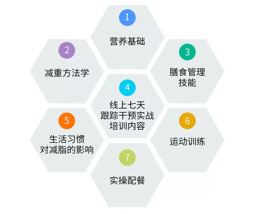 培训课程经过综合设置,以《中国肥胖预防和控制蓝皮书》和《中国超重/肥胖医学营养治疗专家达成共识》为理论基础,通过减重方法学讲解+案例配餐实操+线上跟踪干预指导技巧三个组成部分,以科学合理的营养搭配、膳食平衡、运动补充及减重策略的系统知识讲解科学减重跟踪干预的技巧和理论。