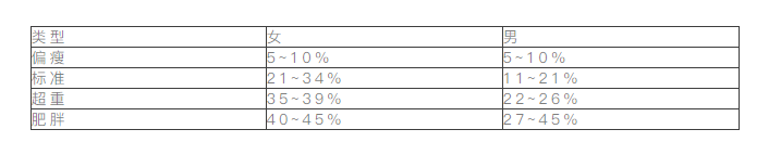 注意BMI的计算中没有考虑到脂肪比例,孕妇,青少年,或者肌肉发达的运动员,水肿患者等不合适使用BMI值去判断。这时我们可以用体脂率去判断体重是否是处于正常范围。