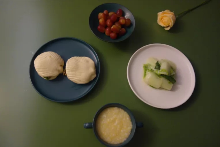 早餐时间不充裕,尽量简单操作,同时保持营养充足;鸡蛋含优质蛋白质,牛奶是钙和优质蛋白质的重要来源。橙子中维生素C含量高。而主食是甘薯,甘薯除了含淀粉提供能量外,富含膳食纤维,胡萝卜素,维生素以及钾、铁、铜、硒、钙等微量元素;甘薯有许多种类,口感也各不同,如福建的六鳌蜜薯偏甜,海南的板栗地瓜薯偏粉糯。